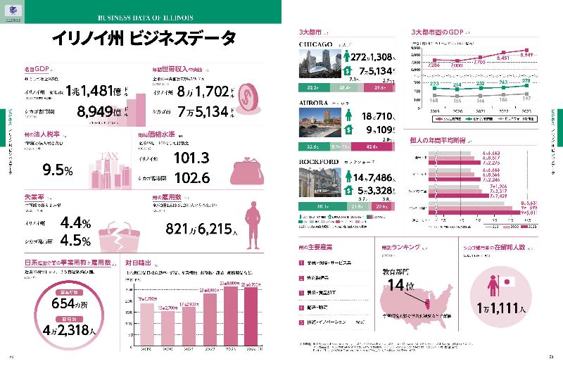 シカゴ・デトロイトをはじめとするアメリカ中西部生活の必携本最新号。全ページカラーで、写真を多用し、2州での生活に必要な情報をわかりやすく解説しています。